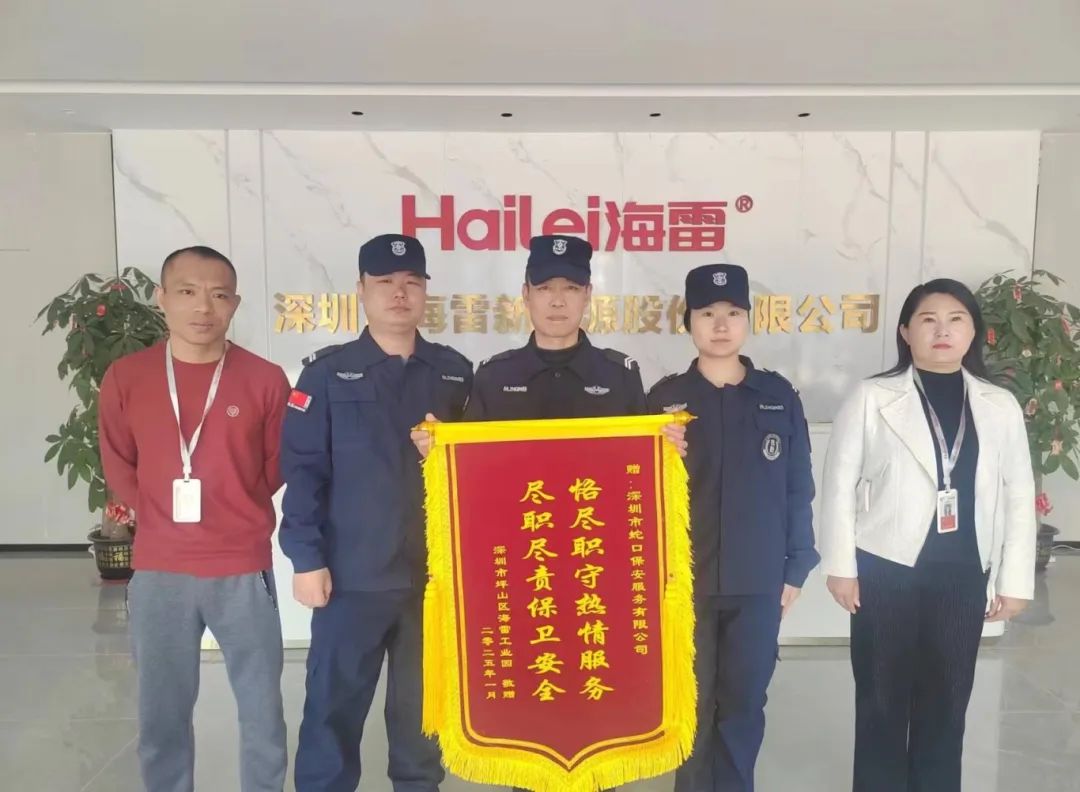 近日,我司收到来自深圳市坪山区海雷新能源股份有限公司的表扬信和锦旗,对我司保安团队在项目中的出色表现给予了高度肯定。在日...